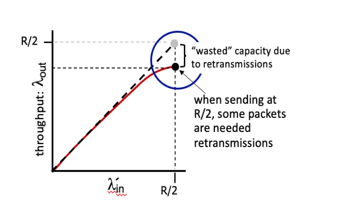 - 如果吞吐量远小于 ( ),则说明网络可能处于拥塞状态,或存在其他性能问题。在这种情况下,TCP 应该降低发送速率,以避免进一步增加网络的负载,从而加重拥塞。发送方会减少其拥塞窗口的大小,降低发送速率,以寻找网络的最佳操作点。
