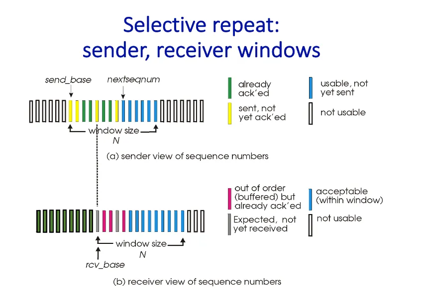 - By using the retransmission timeout timer and counting the number of bytes sent since the last timeout to compute the sending rate since that last timeout, and then making sure its sending rate never exceed the rate set by AIMD. 通过使用重传超时定时器,统计上次超时后发送的字节数,计算出上次超时后的发送速率,并保证其发送速率不超过 AIMD 设定的速率。
