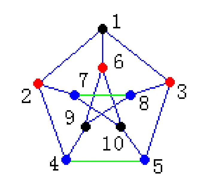 图(b)所示的Petersen子图H是删除3以及以3为端点的3条边得到的,