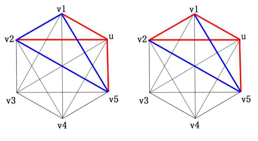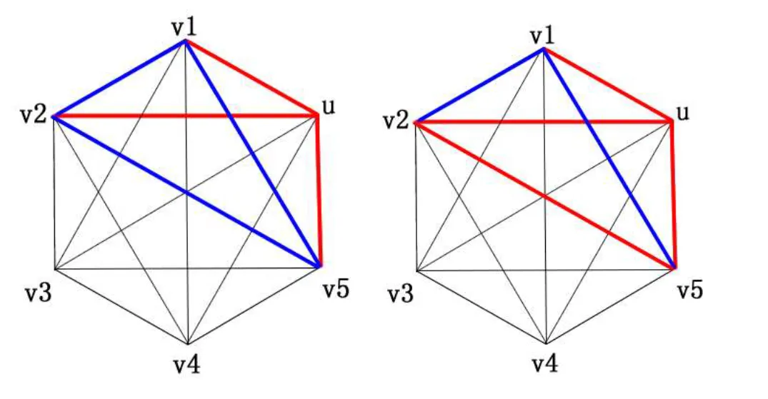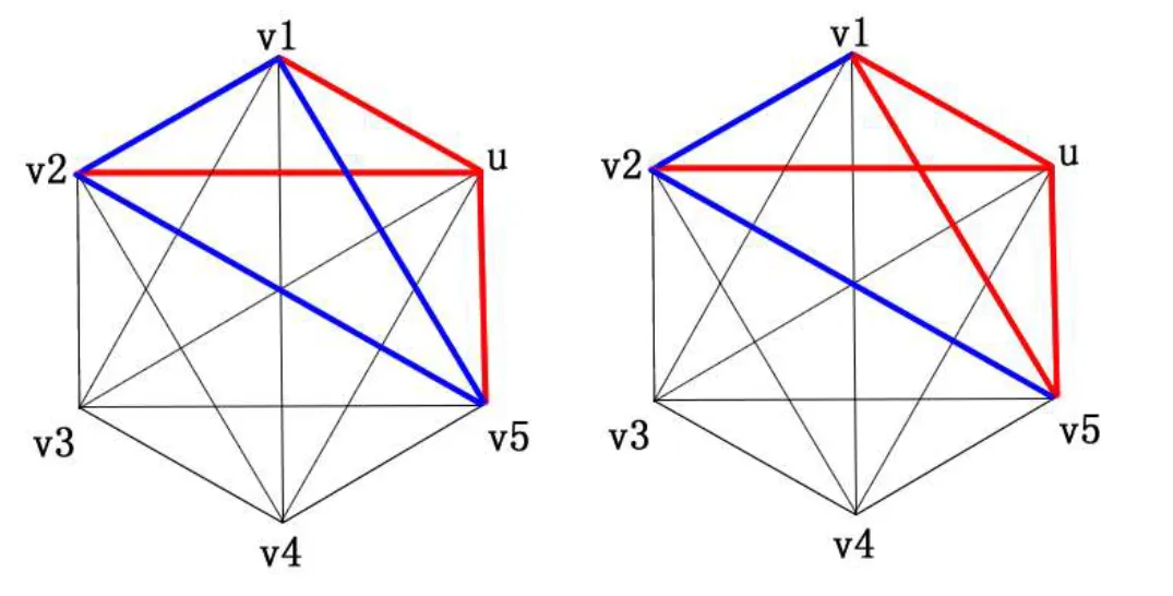 Supposed (u, v1), (u, v2) and (u,v5) are colored in red,