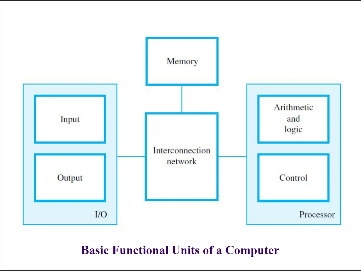 Arithmetic and logic unit, control unit, memory, input unit, output unit
