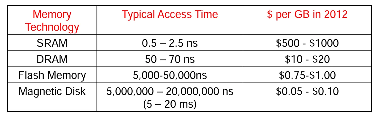 理想存储面临的问题:然而,这些要求之间是相互矛盾的。一般来说,存储容量越大,速度往往越慢,因为容量增大意味着需要更长的时间来确定存储位置;而且速度越快的存储设备通常价格也越昂贵,例如静态随机存取存储器(SRAM)和动态随机存取存储器(DRAM)在技术和成本上就体现了这种差异。