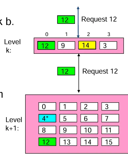- 未命中(Miss)情况:要是数据块 b 不在层级 k 的缓冲区中,那么层级 k 的缓冲区就必须从层级 k + 1 去获取该数据块(例如需要获取块 12 这种情况),这就是“未命中”的情况。
