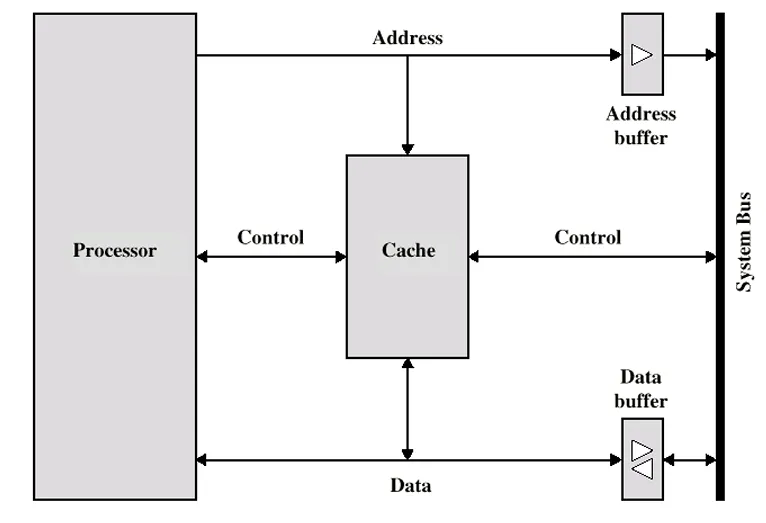 处理器不需要明确知晓高速缓存的存在情况。它只是简单地使用指向内存中相应位置的地址来发出读(Read)和写(Write)请求。然后由高速缓存控制电路来判断所请求的字当前是否存在于高速缓存之中。