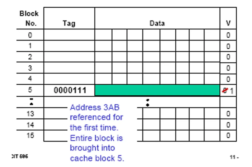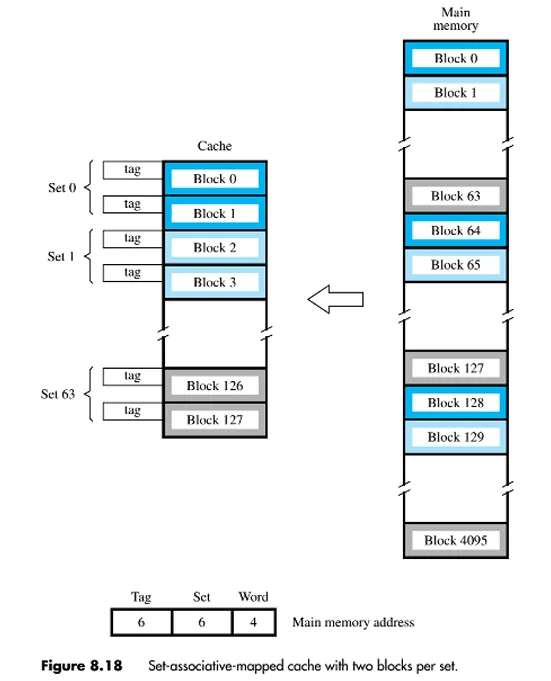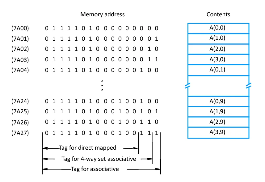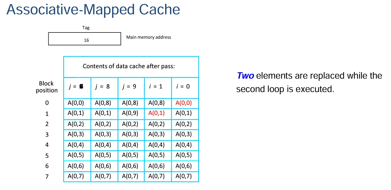 - Its disadvantage is that it requires complex circuitry to examine the tags of all cache blocks in parallel.