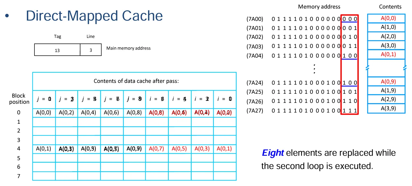 - 在直接映射方式下,主存储器的每一个数据块都只会映射到唯一的一个高速缓存行上。也就是说,如果某个主存块存在于高速缓存当中,那它必然处于某一个特定的位置上。