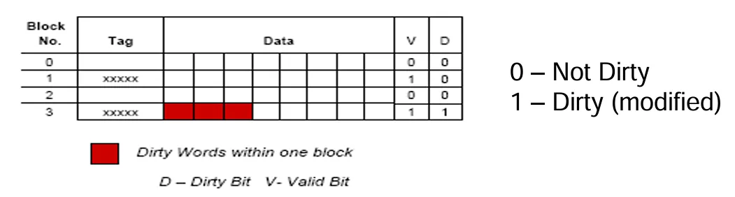 - (2)Need extra bit in cache to indicate which block has been modified. Adds to size of the cache.